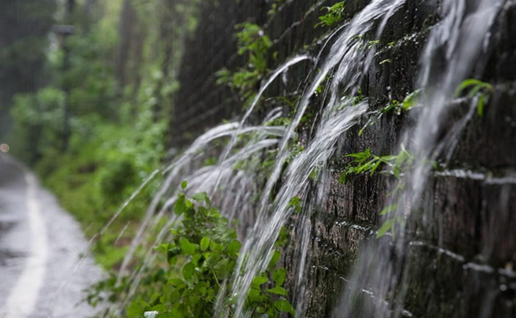 7月1日,江苏省南京市,南京遭遇强降雨天气,南京市气象台发布暴雨橙色预警,雨水渗入历史悠久的明城墙墙体内,经由其排水系统喷吐而出,形成了独特的“龙吐水”景观。
