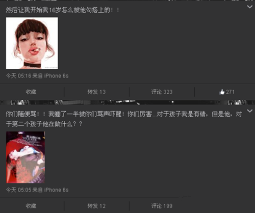然后让我开始我16岁怎么被他勾搭上的!!你们随便骂!!我睡了一半被你们骂声吓醒!你们厉害...对于孩子我是有错,但是他,对于第二个孩子他在做什么??