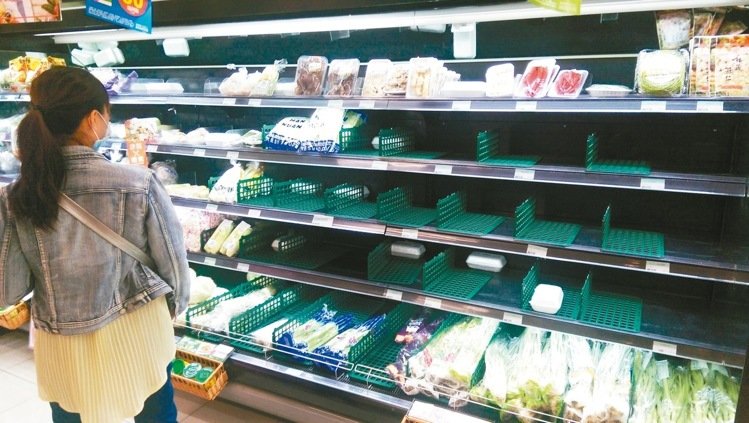 台风来袭前出现抢货潮,台东一家生鲜超市部分蔬菜架空空如也。